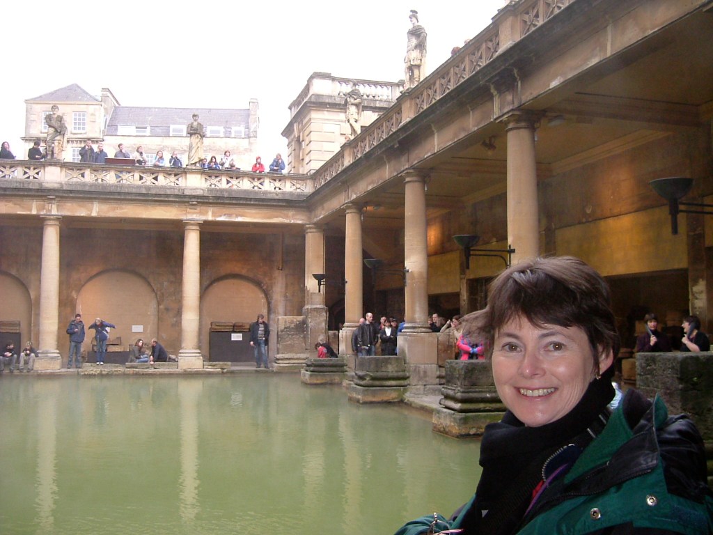 The tourist bureau provided us with a list of what to do and see and of course the Roman Baths were first on the list. At £9 a head we thought it was expensive but we were given a personal audio guide to accompany us on our tour. Aquae Sulis, as Bath was known by the Romans, flourished between the 1st and the 5th centuries AD. The baths were rediscovered in 1878 and pseudo Roman columns and observatories were added to “enhance” the ruins. In recent times many Roman artifacts have been excavated and put on display. I was curious to know where the people of Jane Austen’s time would have bathed and discovered that in the 18th Century the Pump Room was where one could buy warm mineral water by the glass. Immediately underneath the windows of the Pump Room was the King’s Bath, a giant communal cistern where patients sat in a bath with hot water up to their necks. Men wore brown linen suits while women wore petticoats and jackets of the same material.