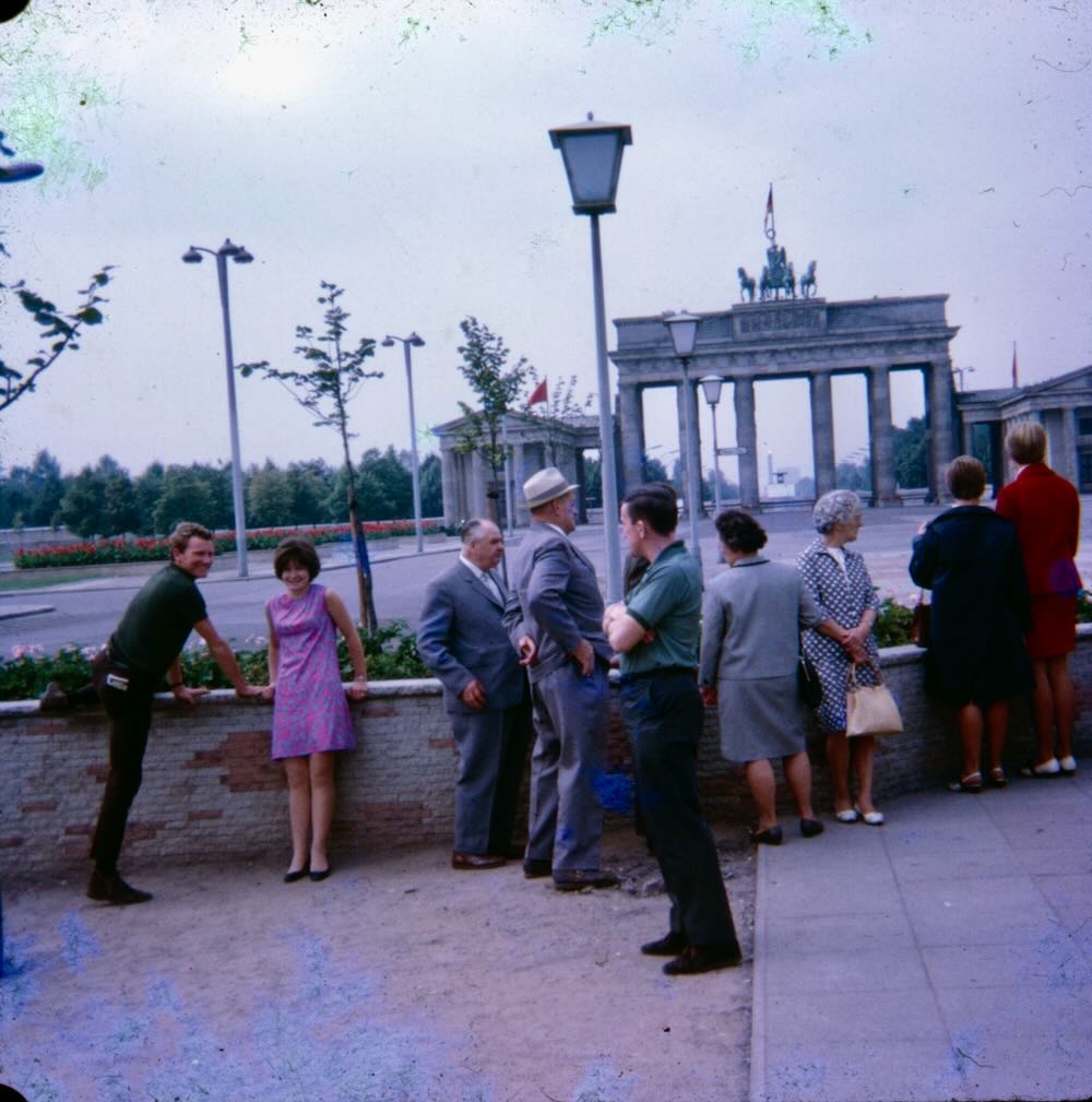 Up at 7:00 am with good brekky in hotel. l changed money and headed off down Karl Marx Avenue to check out the town, past a modern fountain and then back down an old time, fashionable street of pre-war Berlin. Checked out bombed cathedral and saw “monument to those victims sacrificed to Fascism and Militarism”. Continued to Unter den Linden where rebuilding was complete to Brandenburg Gate and saw the wall with guards everywhere patrolling the no man’s land with automatic weapons.