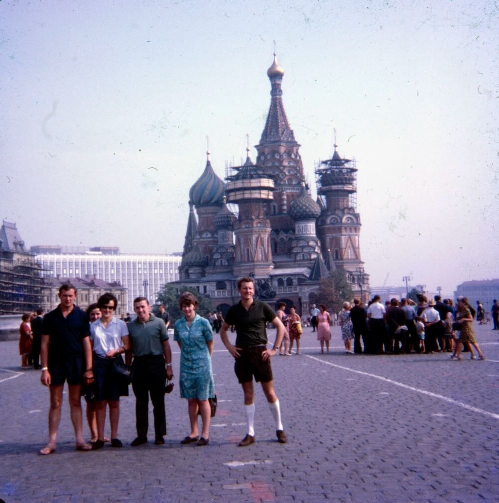 The All the same Russia was very interesting as we had seen nothing like it before. Leningrad and Novgorod were places we stayed and then into Moscow which was much better with modern apartments and new campsite. The shops are very austere, a very narrow range of goods on sale and mainly food shops anyway. There was a good market for ball point biros with flick ends (unfortunately I had bought normal ones) and the chewing gum which were both fetching one rouble each (AU$1) or sixpenny gum on illegal sales. They were so keen for jeans they were prepared to buy the ones we were wearing. Beatles records were also in demand and some people had brought them to sell. Also, there was a very big black market on money changing. You could get two and a half times the official rate but we felt we were being closely watched. Saw quite a lot of the city during our four-night stay.