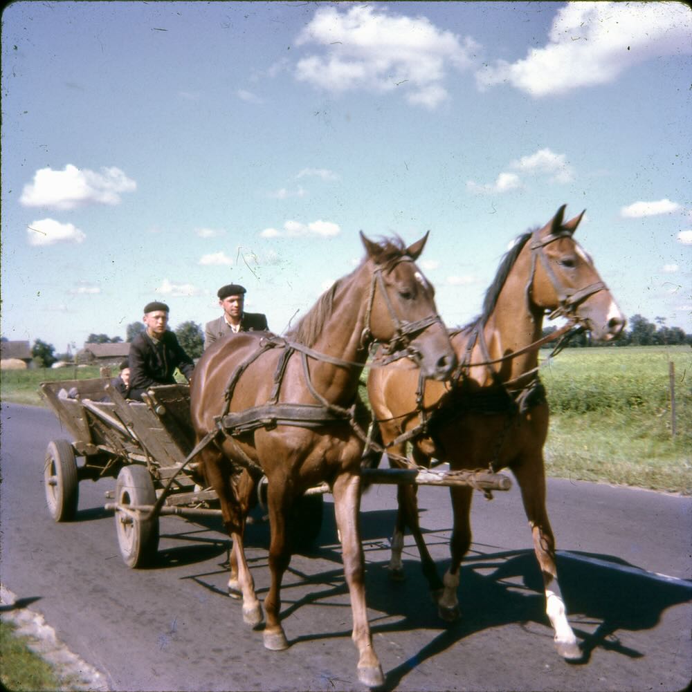 We weren’t sad to get out eventually however into Poland which although Communist too, appears better off financially. At least the horse and carts had rubber tyres! Poland apparently has some free enterprise and it was good to see shops with attractive window displays etc and people who appeared a little more excited about living. Black market prices for money was four times the official rate. From here on we stayed in hotels in two cities that really received a hammering in the Second World War. In Warsaw we saw men unearthing human skeletons buried only two feet down.