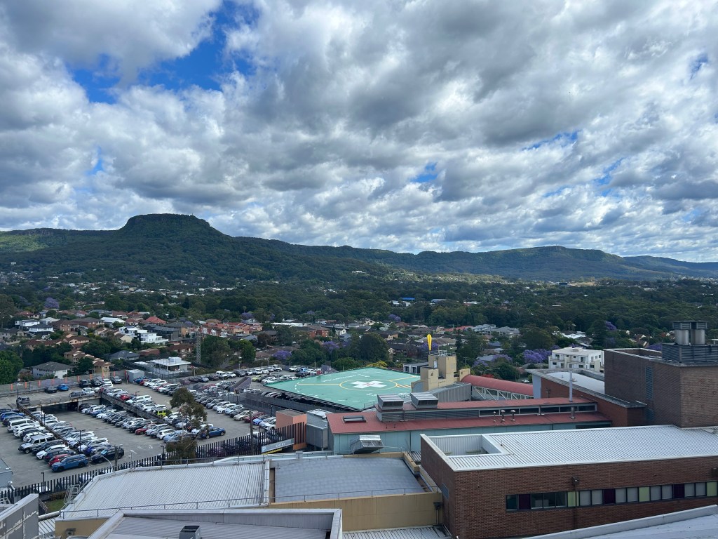 John and I sat in a recreation room with a view towards Mt Keira. It was a change from my four walls. I walked around the wards and sat up in a chair the rest of the time. After all I didn’t feel sick so lying in bed seemed a strange thing to do.