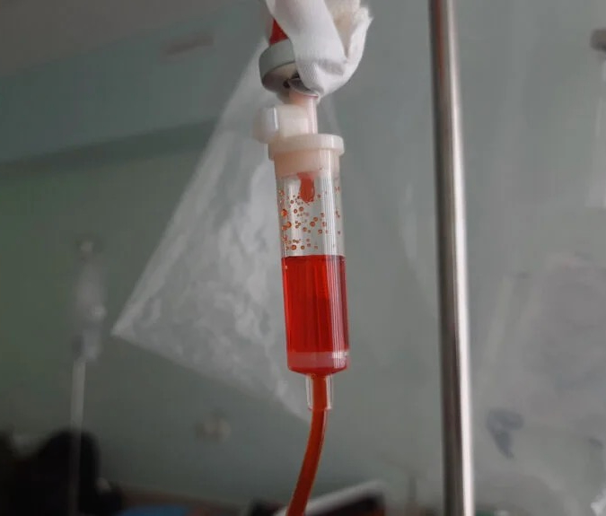 At 11.30 the Doxorubicin was first drug of my treatment. It stops cancer cell division and side effects include hair loss, nausea, fatigue and potential long-term heart damage. It glowed bright red and was administered slowly with a large syringe into the cannula by the junior nurse who was dressed from head to toe in plastic. She was very nervous but was watched closely by her superior. It took about 15 minutes and we were all relieved when it was over.