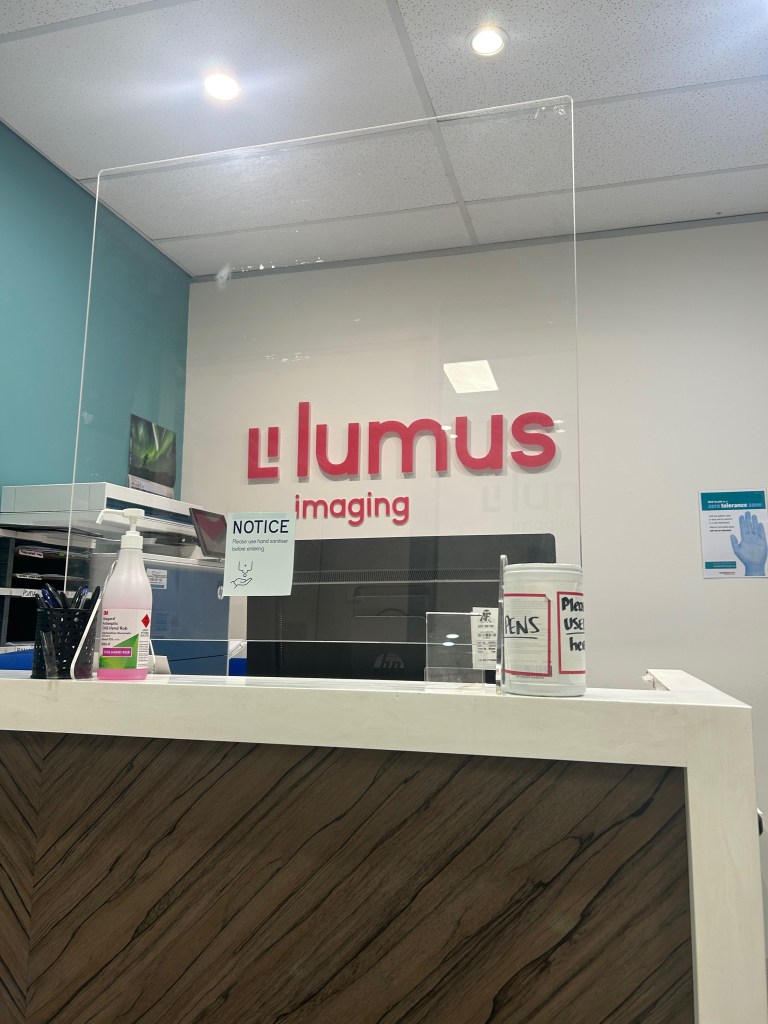 On Thursday, 15th January I was due to have a PET scan to see if the first four rounds of chemo had destroyed the lymphoma.  John dropped me off at Wollongong Hospital and I found my way to Lumus Imaging on Level 1.  I was asked to strip to underwear and given a purple paper gown to wear which was open down the back.  I’m always wary of cannulas as my veins are small and hard to find but the nurse placed it first go with no pain.  I told her she could do it every time and asked could I keep her for future scans.