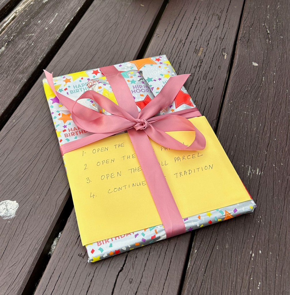 Juliet and Sebastian arrived first, followed by Duncan*, Juliet’s husband, who, because he had a cold, sat at the other end of the table from me. Cordelia was late from her drama class but arrived in time to open her present before the food arrived. The instructions were as follows.