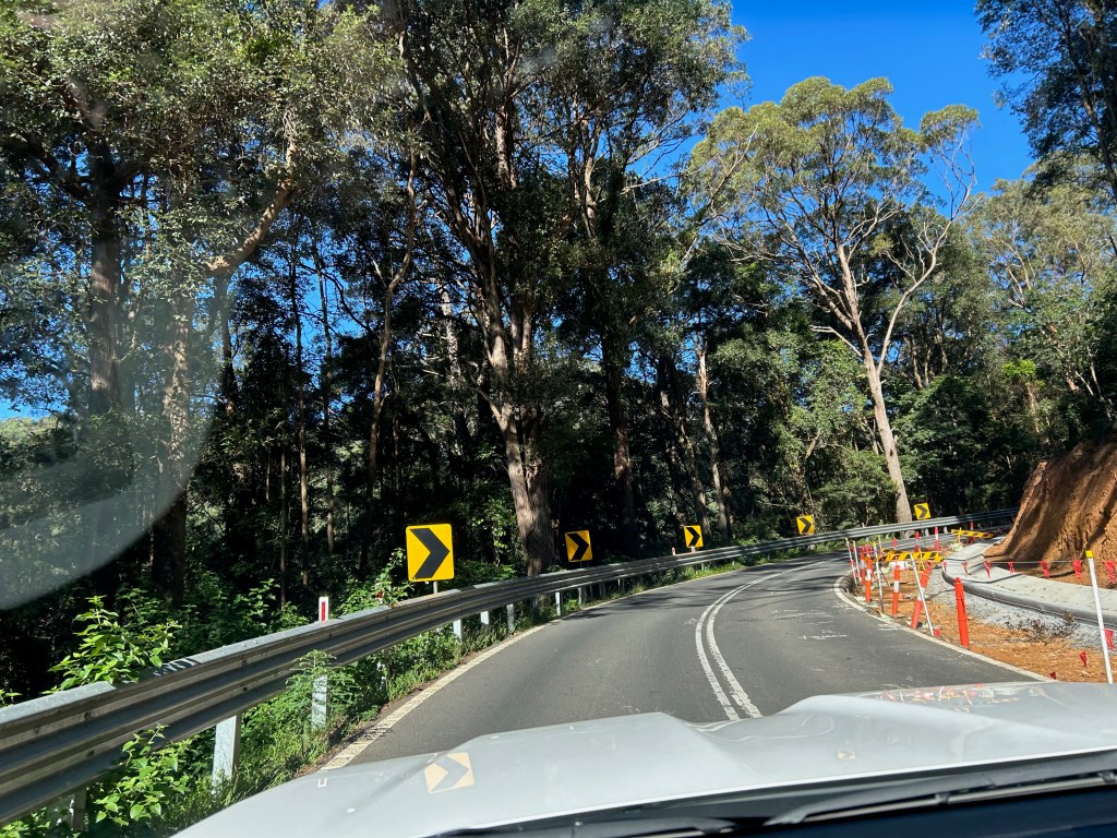 The next stop was Moss Vale so we elected to drive up Macquarie Pass. It is undergoing some maintenance at the moment so we waited at a stop sign for a long time while traffic snaked along the single lane beside us. Still, the sky was blue, the trees tall and magnificent and we were out on a mystery picnic so no time for complaining.
