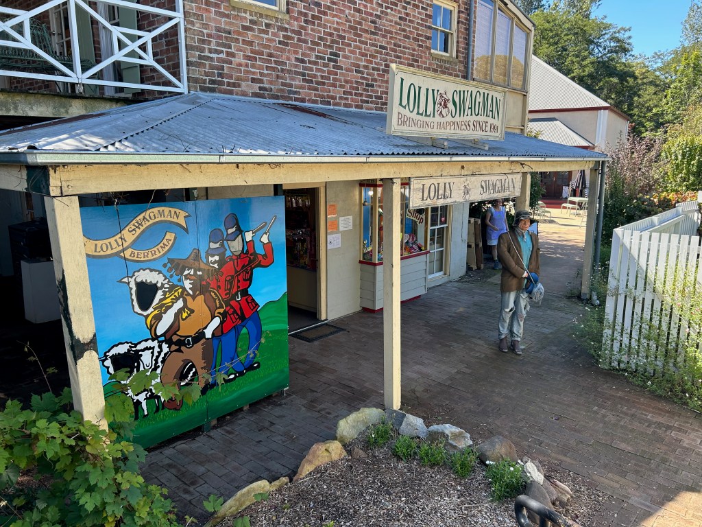 I had worked out the clues the day before so we would know where we were going so the next destination was the town of Berrima, ten kilometres away. Our object was to find the Lolly Swagman, a shop selling fudge, as well as other lollies and sweets of all descriptions.. While I might try to avoid fudge as a general rule, it was free, so why not? In fact, it was very tasty, two thick slices of plain chocolate plus cherry ripe. Of course we didn’t eat it then. Might spoil our mystery lunch!